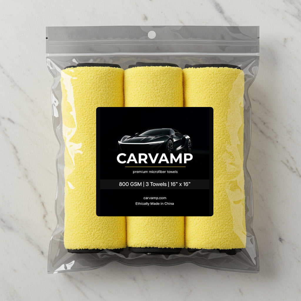 Carvamp Premium Microfiber Car Towels — 800 GSM, Dual-Sided, 16” x 16”, 3-Pack
